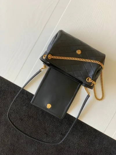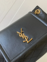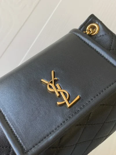 A timeless silhouette with contemporary edge, the Monogram Nolita bag features a front flap embellished with interlocking metal Y initials. Crafted from supple 100% lambskin leather, it showcases elegant diamond-quilted overstitching and a convertible chain-and-leather strap for versatile styling—wear it long as a crossbody or doubled as a shoulder bag.