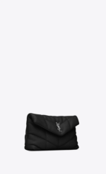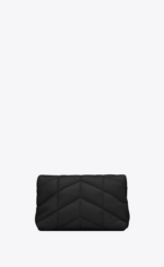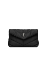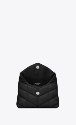 Crafted from 100% lambskin, this elegant small pouch features a soft, puffy silhouette with silver-toned metal hardware for a refined finish. The interior is lined with grosgrain and includes one main compartment, three card slots, and a removable card case with a dedicated receipt pocket. Secured with a magnetic snap closure.-